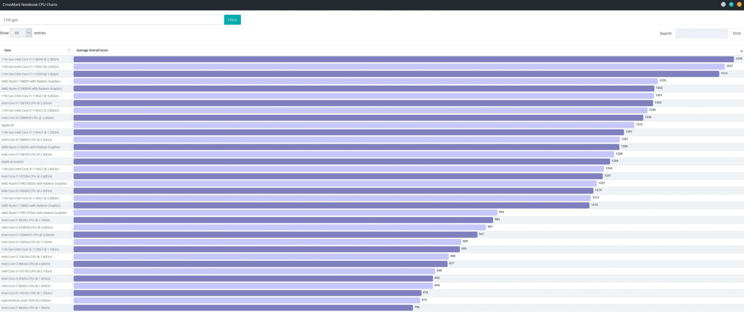 По результатам теста CrossMark, Intel Core i7-1195G7 обгоняет процессоры со схожими характеристиками — AMD Ryzen 5800U и Apple M1. Новый чип от Intel вырос в производительности на 12%, по сравнению с прошлыми версиями, не смотря на то, что обычно прирост новых версий составляется всего 5-7%.